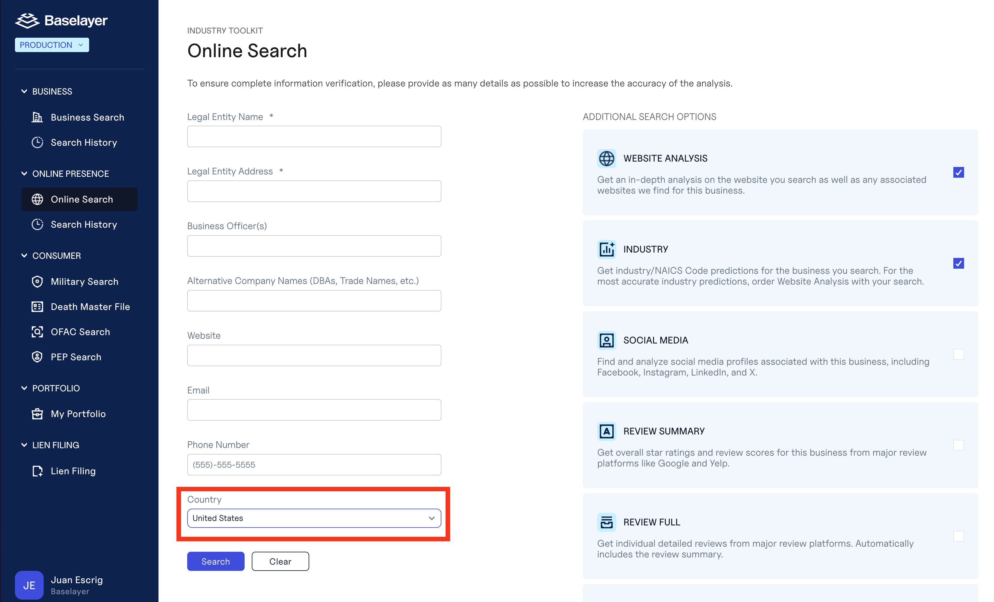 Verify international businesses using Baselayer's International Business Search and Web Presence products